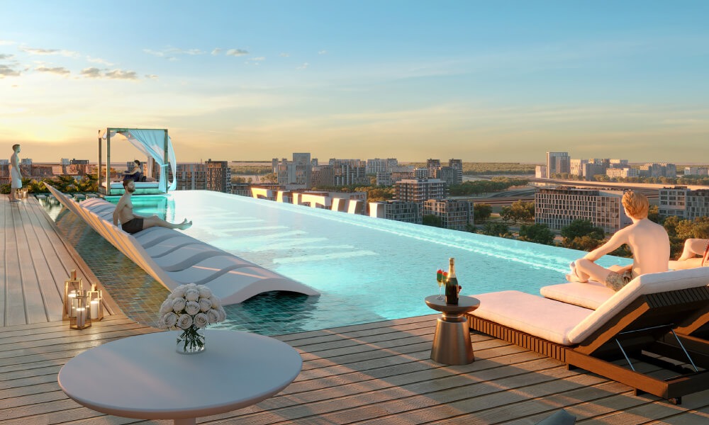 - Resort-Like Amenities – Includes rooftop and infinity pools, sauna & steam rooms, paddle court, and open-air cinema.