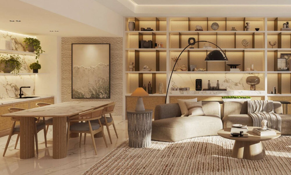 The project features a collection of 1 to 5-bedroom residences expertly designed by Koichi Takada, blending natural textures, open layouts, and soft earthy palettes. Interiors include Italian kitchens, motion-sensor wardrobes, and a choice between light or dark finish options, delivering a refined and modern living experience.