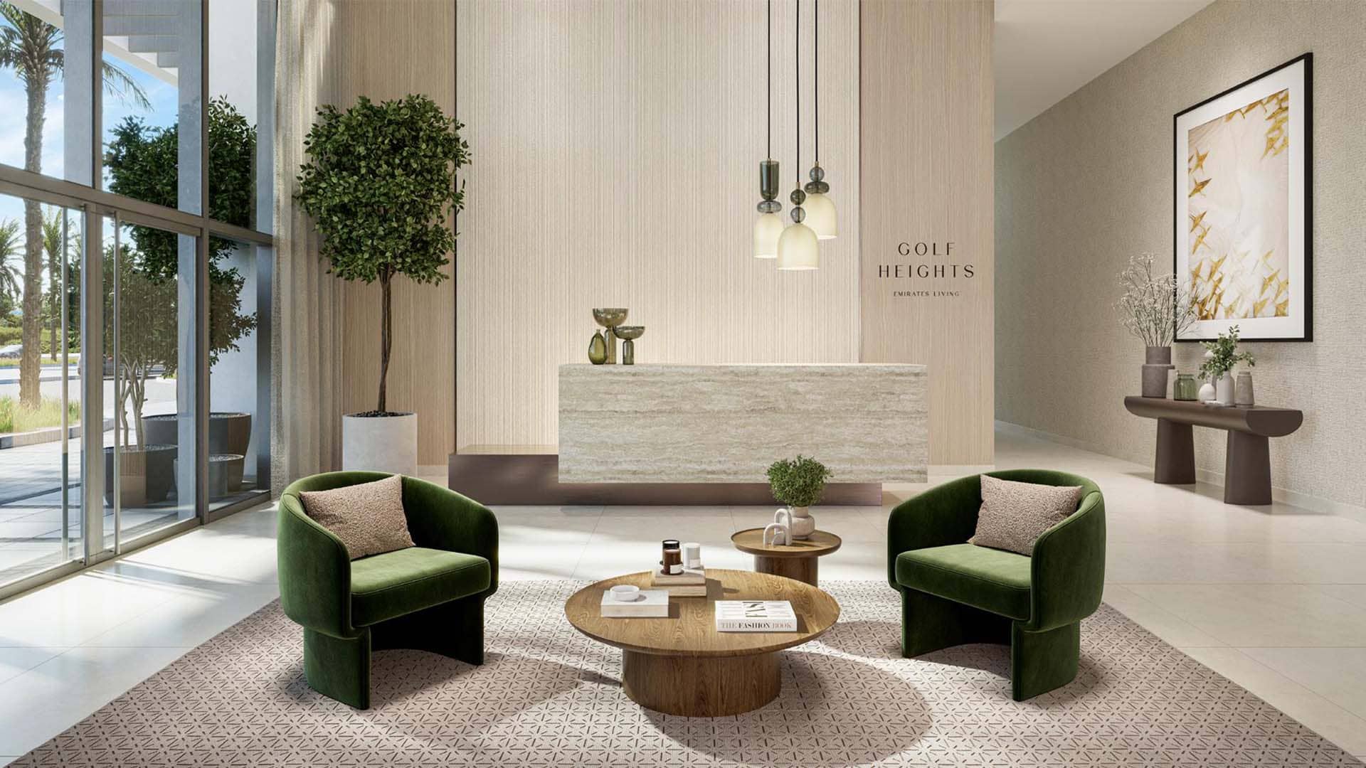 Golf Heights at Emirates Living is a chic, modern residential building in a superb location with breathtaking views of some of Dubais most beautiful natural settings.