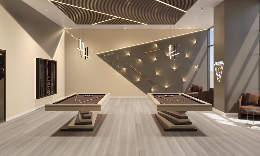 Work-Life Balance – Gym, sauna, golf simulator, infinity pool, and games room to relax and recharge after work.