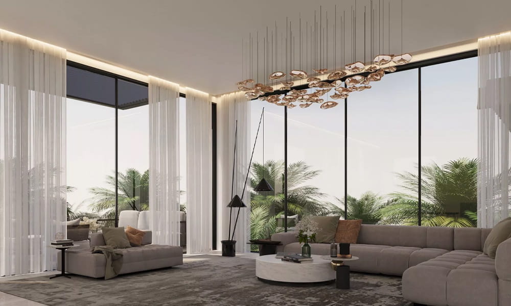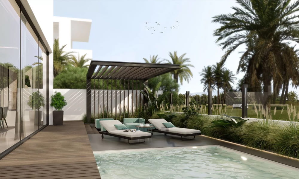 Residents enjoy opulent in-home amenities, including a private gym, home cinema, and a serene pool with a jacuzzi. Terra’s villas and townhouses offer unobstructed, breathtaking views of the golf course, paired with minimalist yet sophisticated architecture. Neutral colors and natural materials enhance the beauty of the surroundings, complemented by luxurious finishes throughout.