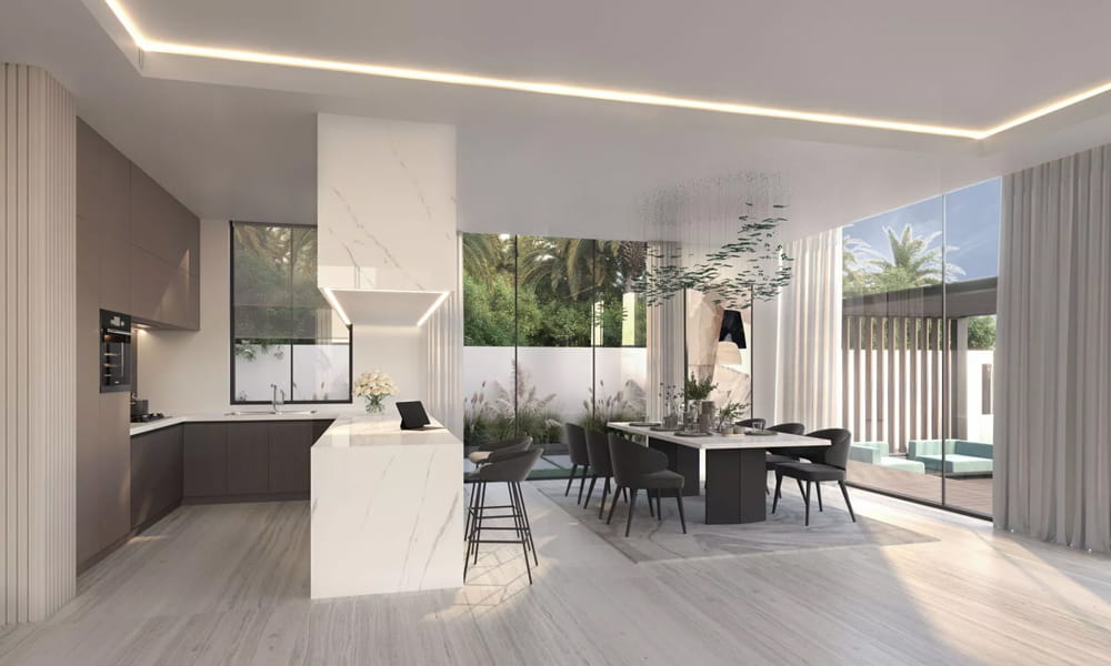 Developed by Taraf, the real estate arm of YAS Holding—one of the UAE’s prestigious investment groups—Terra features 84 villas seamlessly integrated into the picturesque landscape. Modernist minimalism, sleek geometric aesthetics, and a natural connection to the golf course define its architectural identity.