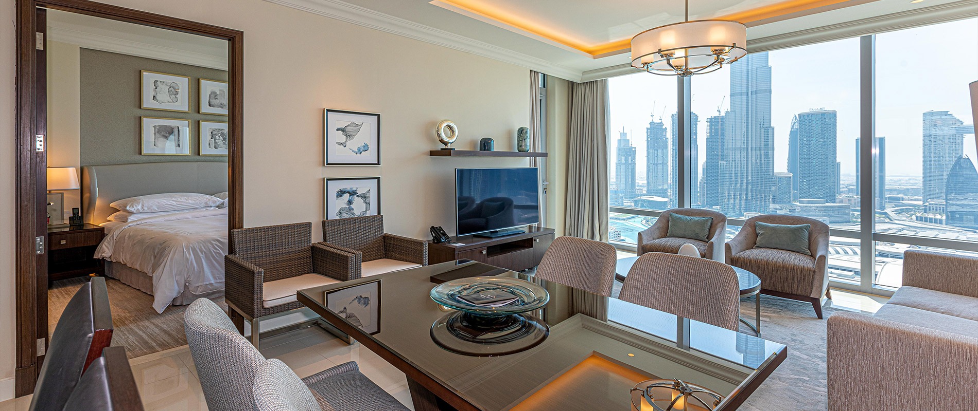 Directly located on Mohammed Bin Rashid Boulevard and sitting on top of The Dubai Mall extension, The Address Residence Fountain Views is within minutes of Dubai’s corporate nerve centres DIFC, Emaar Square, Boulevard Plaza and educational institutions; It is in the heart of the city’s central district. Amenities include a fully equipped health club and a rooftop recreation deck complete with landscape amenities and water features. The swimming pools cater for lap and family swimming plus wet-deck lounging. A shaded children’s pool supplement the family pool, and together with the lawn and play zone ensure that children are well catered for. Health and well-being is ensured, with quiet gardens, garden cabanas and shaded seating areas, while those wishing to be sociable can take advantage of designated barbeque area. The F&B outlet opens onto the landscaped recreation deck, where dining tables are set amongst the garden and plaza.
