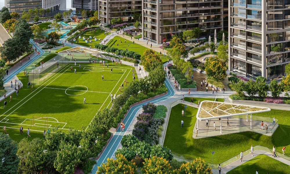 Premium Amenities – Includes a gym, outdoor cinema, pools, BBQ zones, and a mini golf course.